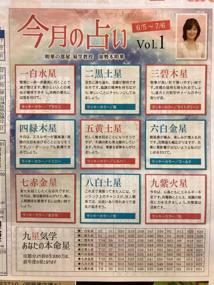 また、同誌では、6月の占いも載せて頂いています。今月の占いは、次回からも連載予定です。