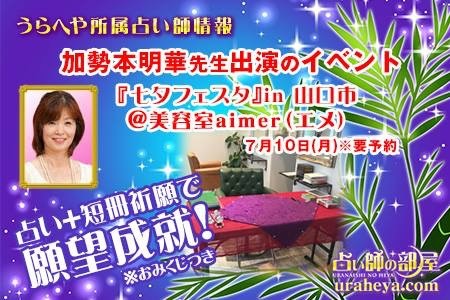 7月10日(月)山口の美容室aimerにて、七夕フェスタと称してイベント鑑定を行う事になりました。